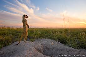 En las cálidas praderas africanas, el meerkat, un pequeño mamífero pariente de la mangosta vive en colonias, en complejos de madrigueras excavados en tierra seca. Mientras los demás se alimentan, un meerkat se sube hasta una posición elevada para hacer de centinela y avisar a los demás en caso de peligro por la presencia de algún depredador cercano. Este meerkat centinela está arriesgando su vida por el bien